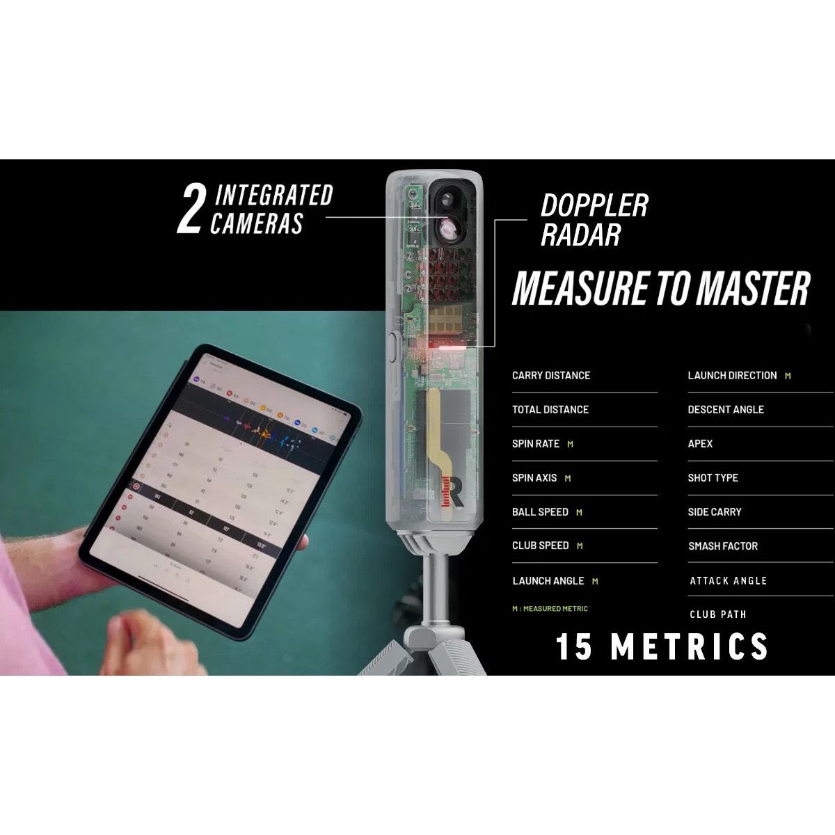 - 15 metrics - 8 measured - including spin rate*, spin axis*, attack angle and club path